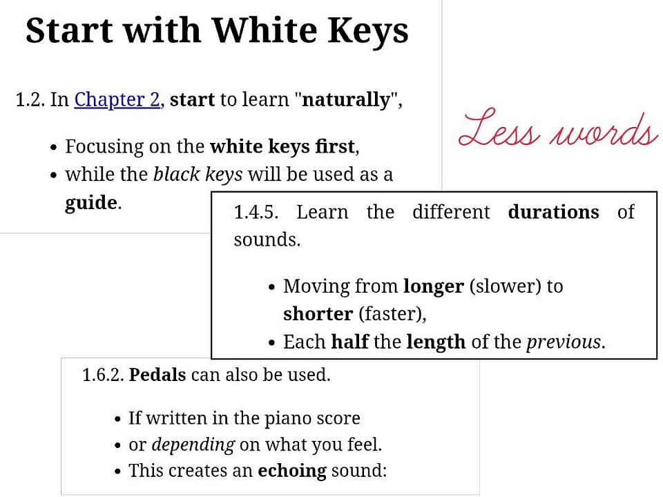 - Learn the piano with less words.