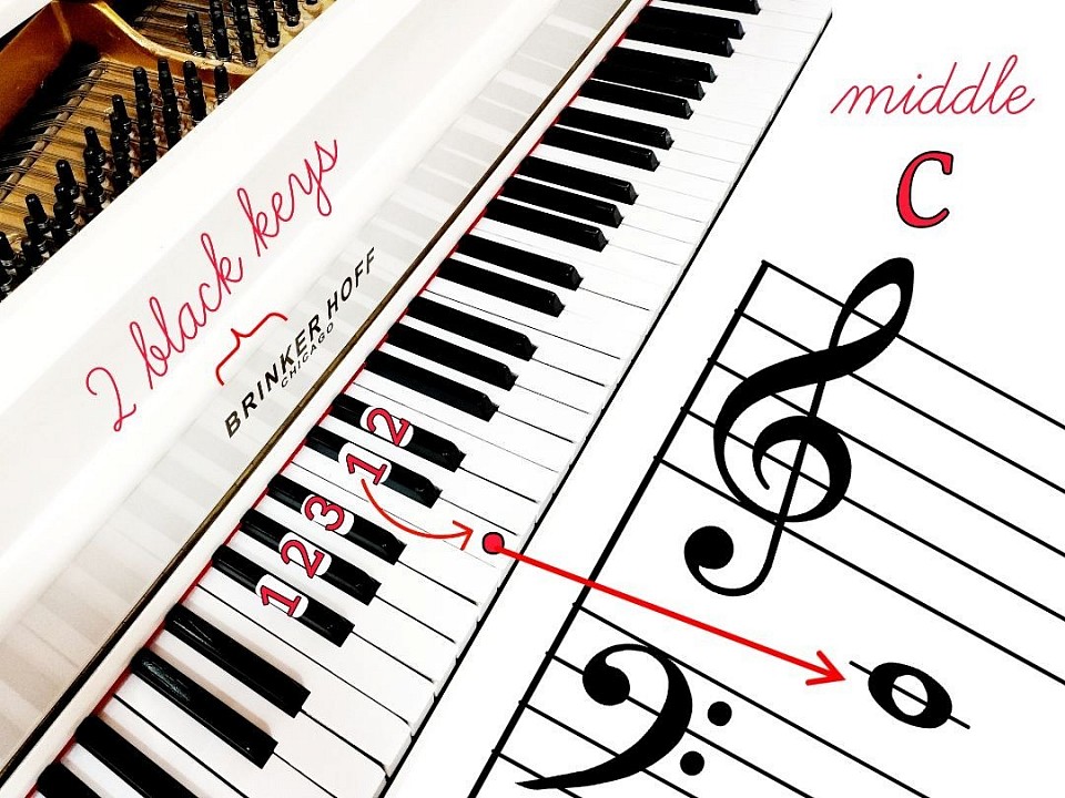 - Before playing the piano, locate the middlemost 2 black keys and find Middle C.